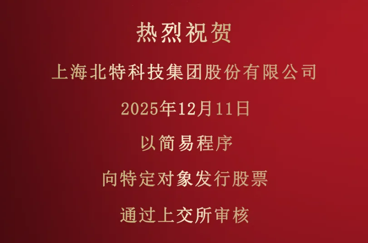 热烈祝贺上海北特科技(603009)以简易程序向特定对象发行股票通过上交所审核!