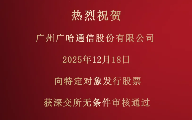 热烈祝贺广州广哈通信(300711)向特定对象发行股票无条件通过深交所审核!