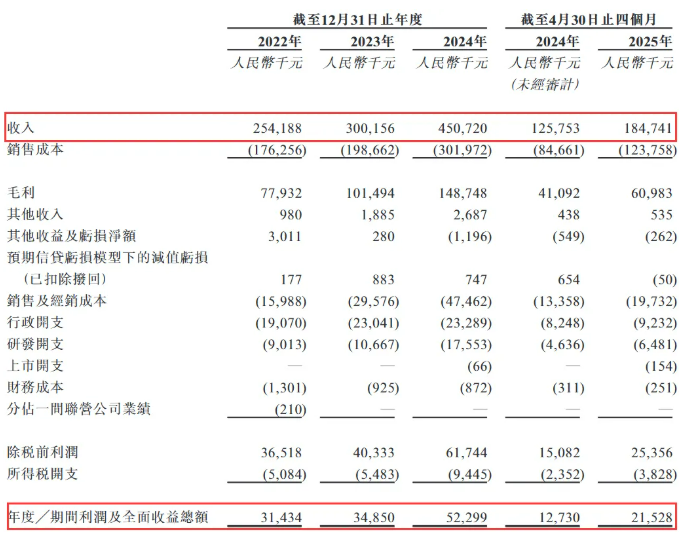 公司广泛的经销网络覆盖中国线下和在线渠道。截至2025年4月30日,公司与遍布中国30个省级行政区的38家经销商合作,覆盖680个零售点。2024年线上直销收入超1亿元人民币,2022年至2024年复合增长率约为166.6%。