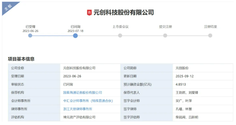 公司IPO申请2025年6月26日获上交所受理,9月19日就将上会审核,受理才不到三个月。