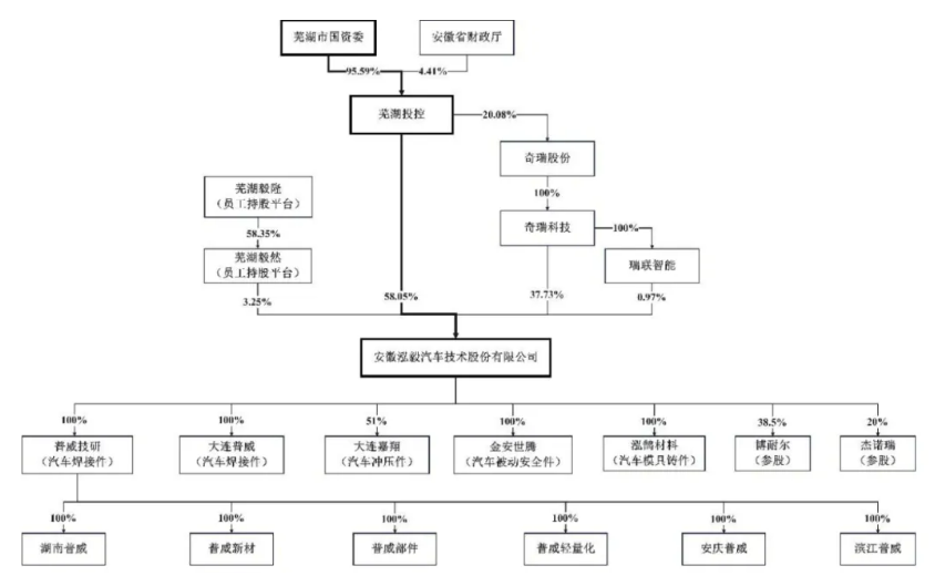 芜湖投控直接持有公司股份90,000,000股,占比58.05%,芜湖市国资委直接持有芜湖投控95.59%出资额,芜湖投控为公司的控股股东,芜湖市国资委为公司实际控制人。