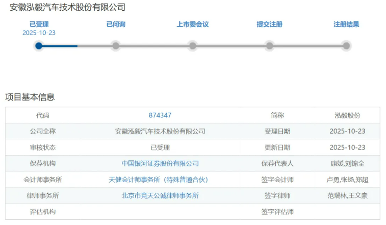 泓毅股份的主营业务为汽车零部件、工装装备的设计、研发、生产和销售,主要产品为汽车冲焊件、汽车被动安全件及模具铸件等。