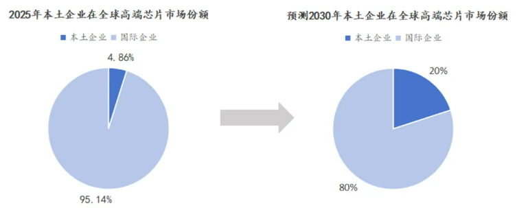 2、中国市场显著特点——国产替代加速:2030年本土企业在高端芯片市场份额有望从当前4.86%提升至20%左右。