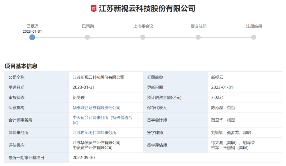 1月31日,江苏新视云科技股份有限公司(下称“新视云”)在深圳证券交易所递交招股书,第二次冲刺创业板IPO。
