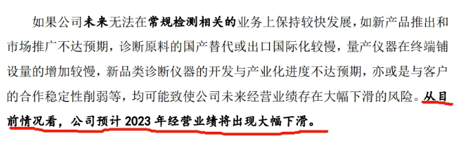 2022年底,相关特定急性呼吸道传染病所引发的公共卫生事件在全球范围进入了尾声,支撑公司业绩增长的供需环境发生了彻底的改变,公司预计2023年经营业绩将出现大幅下滑。