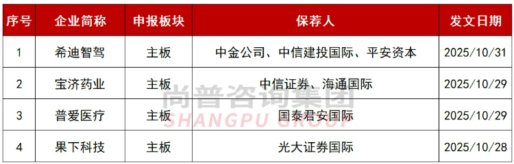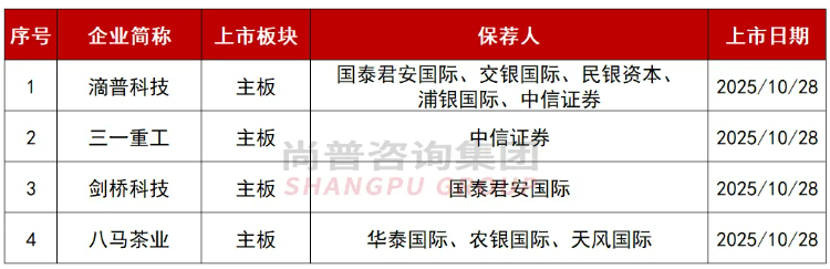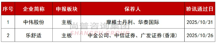 10月27日,证监会主席吴清在2025金融街论坛年会上表示,优化互联互通机制,提升境外上市备案质效,深化内地与香港市场务实合作,努力推动形成在岸与离岸协同发展、开放与安全良性互动的发展新格局。在风险再定价、资产再平衡过程中,稳健性和均衡性日益成为资产配置的优先选项。在此过程中,A股、港股等中国资产持续重估,配置价值更加显现。10月25日-10月31日(下同),33家企业递表港交所。其中,智慧互通、汉森软件、天农集团、鲟龙科技、红星冷链、海辰储能A股上市辅导未果转战港股;南华期货、涛涛车业、博瑞医药、珀莱雅、天味食品、佰维存储、富瀚微、罗博特科、纳芯微9家企业已成功登陆A股,此次冲刺“A+H”两地上市。