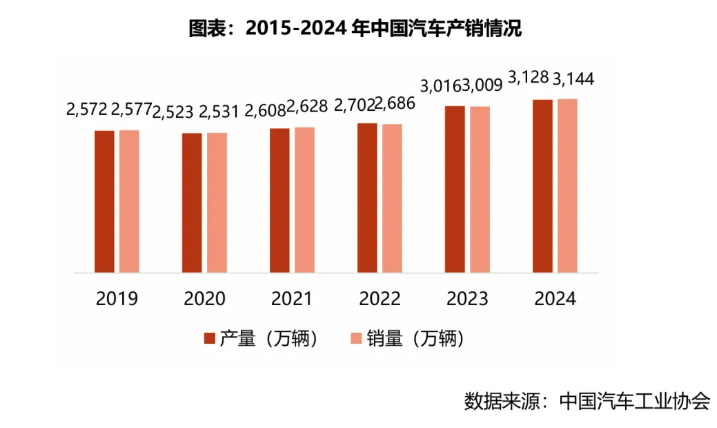 随着国民经济不断发展,我国汽车产业呈现良好的发展态势,汽车产业在我国国民经济中的地位和作用持续增强。受新能源汽车快速发展、政府陆续出台政策刺激消费等因素影响,我国汽车产销量持续增长。2019年我国汽车产量为2,572万辆,销量为2,577万辆。2024年产销量分别增长至3,128万辆和3,144万辆,同比增长3.72%和4.46%,高于全球增速。我国汽车产销总量已经连续十余年稳居全球第一。