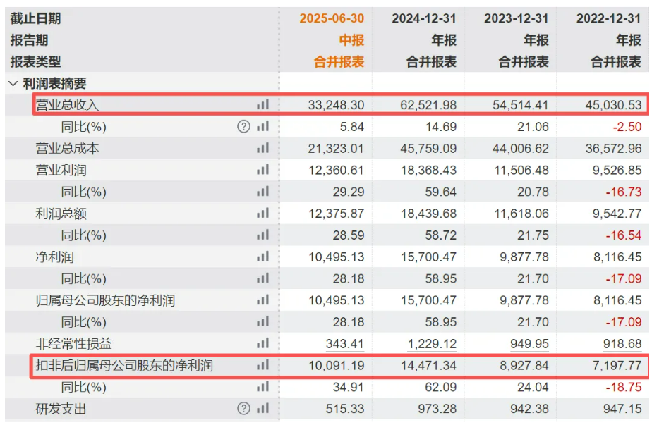 2022年至2024年及2025年1-6月,幺麻子营业收入分别为4.50亿元、5.45亿元、6.25亿元和3.32亿元,扣非后归母净利润分别为7,197.77万元、8,927.84万元、1.45亿元和1.01亿元,盈利能力持续提升。
