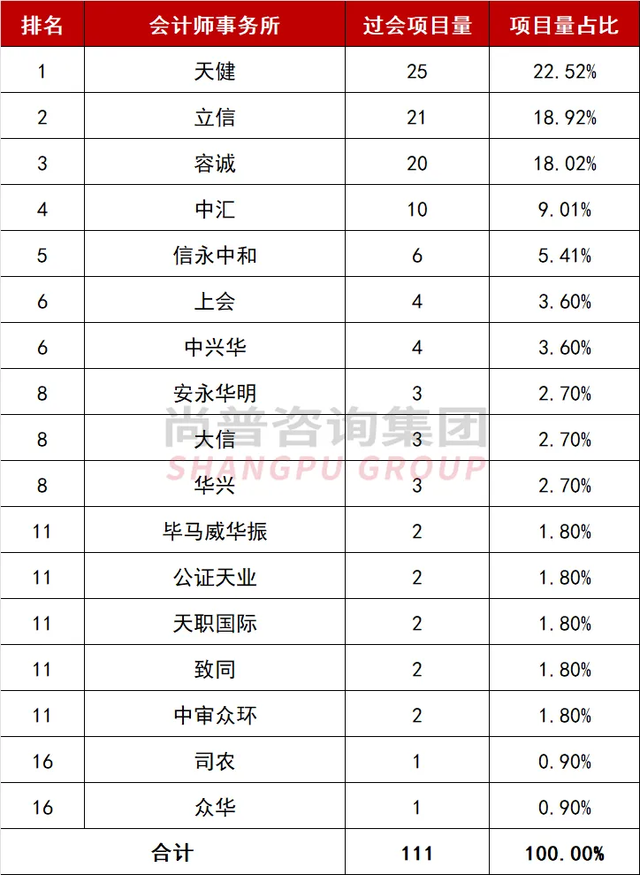 2025年1-12月,共有17家会计师事务所承担了A股111家过会企业的审计工作。以上5家会计师事务所合计过会项目量达82单,占据超七成市场。其中,天健本月揽下7单,强势逆袭,跃升至第一。