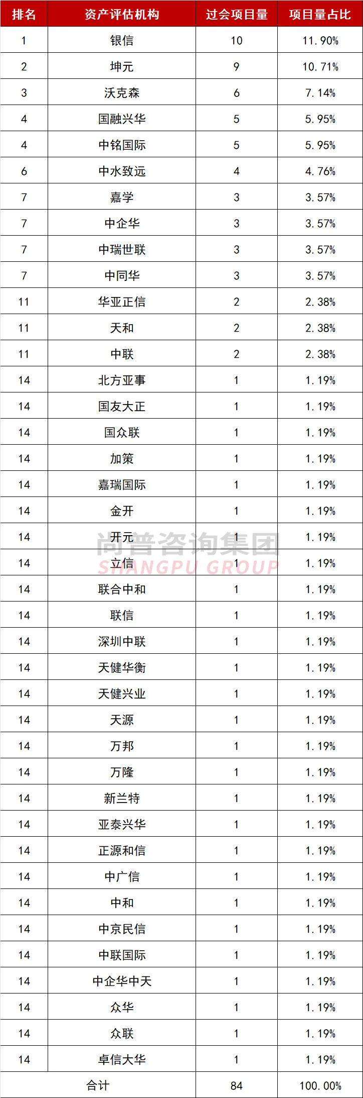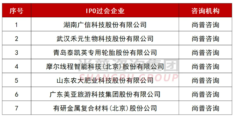 注:28家企业未聘请,1家企业聘请2家资产评估机构,故项目量总数为84。2025年1-12月,尚普咨询为以下7家IPO过会企业提供了咨询服务。