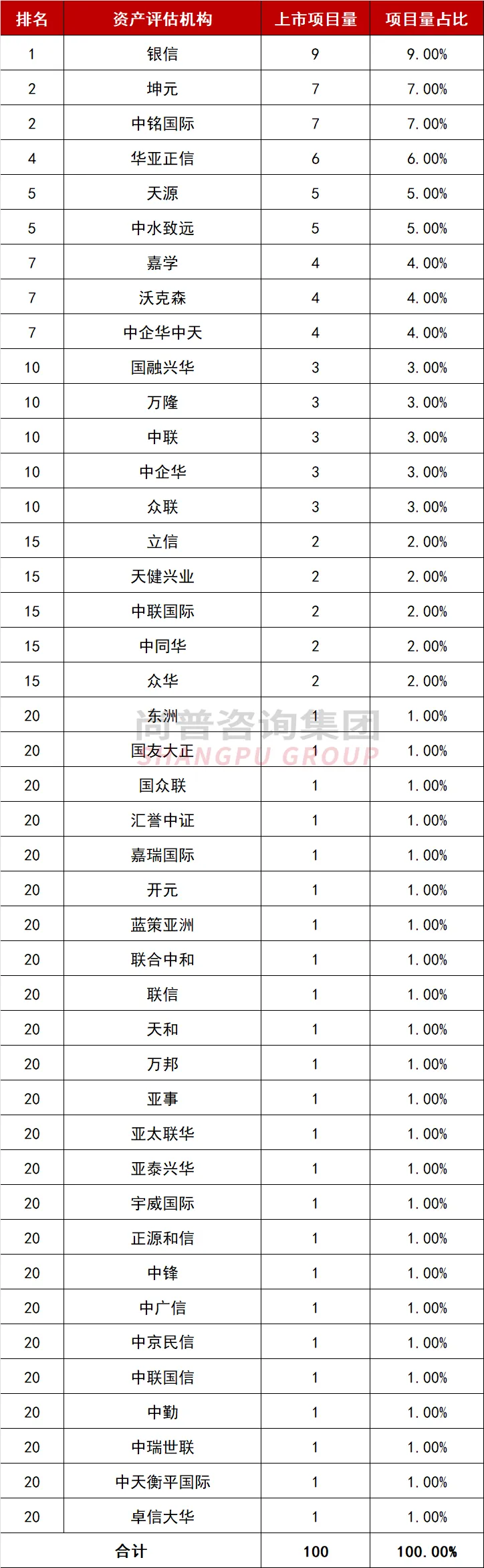 注:20家企业未聘请资产评估机构,4家企业聘请2家机构,故总数为100。2025年1-12月,尚普咨询成功助力7家企业登陆A股市场。