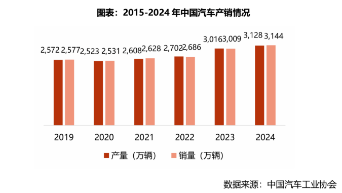 随着国民经济不断发展,我国汽车产业呈现良好的发展态势,汽车产业在我国国民经济中的地位和作用持续增强。受新能源汽车快速发展、政府陆续出台政策刺激消费等因素影响,我国汽车产销量持续增长。2019年我国汽车产量为2,572万辆,销量为2,577万辆。2024年产销量分别增长至3,128万辆和3,144万辆,同比增长3.72%和4.46%,高于全球增速。我国汽车产销总量已经连续十余年稳居全球第一。