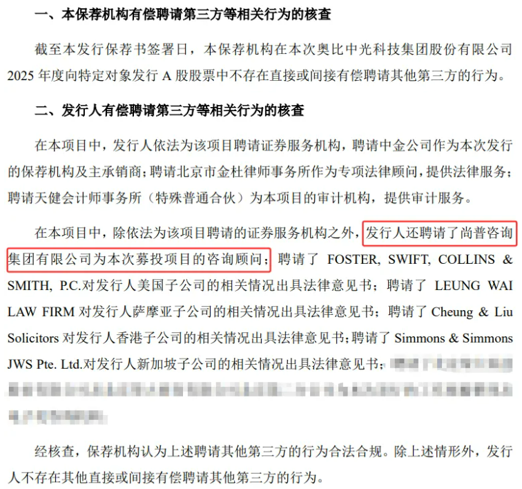 尚普咨询为奥比中光此次再融资提供了募投项目可行性研究咨询服务。