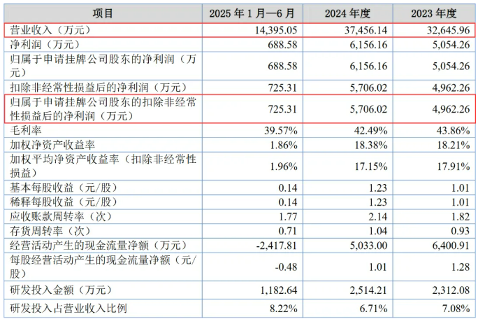 2023年至2025年1-6月,景隆智装营业收入分别为3.26亿元、3.75亿元和1.44亿元,扣非后净利润分别为4,962.26万元、5,706.02万元和725.31万元。值得注意的是,公司经营业绩具有一定的季节性特征,主要集中于下半年。