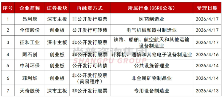 下周7家上会审核,其中IPO3家、公开发行可转债4家。