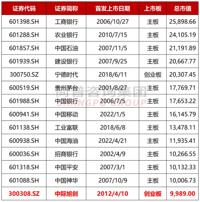 2026年4月23日,A股市场见证了一个历史性时刻——光模块龙头中际旭创(300308.SZ)开盘后股价直线拉升,盘中最高触及919.99元/股,创出上市以来新高,总市值首次突破1万亿元大关,正式跻身A股“万亿市值俱乐部”。值得注意的是,A股市值超过1万亿元的上市公司共有13家,如工商银行、农业银行、中国石油、建设银行、宁德时代、贵州茅台、中国银行、工业富联、中国海油等。