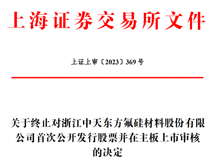 5月15日,根据上交所披露:浙江中天东方氟硅材料股份有限公司(简称“中天氟硅”)沪市主板IPO审核状态变更为终止,原因为发行人及保荐机构撤回首发上市申请。根据《上海证券交易所股票发行上市审核规则》第六十三条的有关规定,上交所决定终止对中天氟硅首次公开发行股票并在主板上市的审核。中天氟硅也成为自今年2月份正式启动全面注册制改革以来,主板首家主动撤回IPO材料的企业。公司主要从事有机硅单体、中间体及下游深加工产品的研发、生产和销售,主要产品包括有机硅甲基单体、环体、硅橡胶、硅油、气相白炭黑等十几种产品,已形成较为完备的上下游产品产业链。根据招股书披露,中天控股直接持有公司92%的股份,通过衢州建瓴间接持有公司3%股份,合计控制公司95%股份,为公司的控股股东,公司的实际控制人为楼永良。成立于2006年的中天氟硅,在业内并非寂寂无名之辈,尤其是其控股股东——中天控股集团。根据其官网显示,2022年中天控股完成产值与销售收入1536亿元,列中国企业500强第194位,列中国承包商80强第6位,LOGO被国家工商总局认定为“中国驰名商标”。报告期内,中天氟硅营业收入为9.71亿元、8.94亿元、12.26亿元和7.47亿元;净利润为1.31亿元、5,997.6万元、3.13亿元和8,932.41万元。中天氟硅本次拟募资14.42亿元,全部用于30万吨/年有机硅单体扩能技改及综合利用项目。