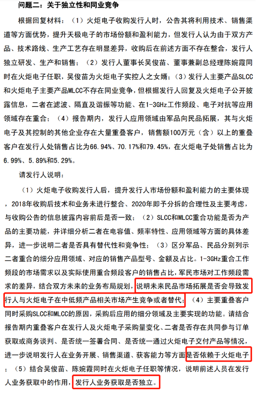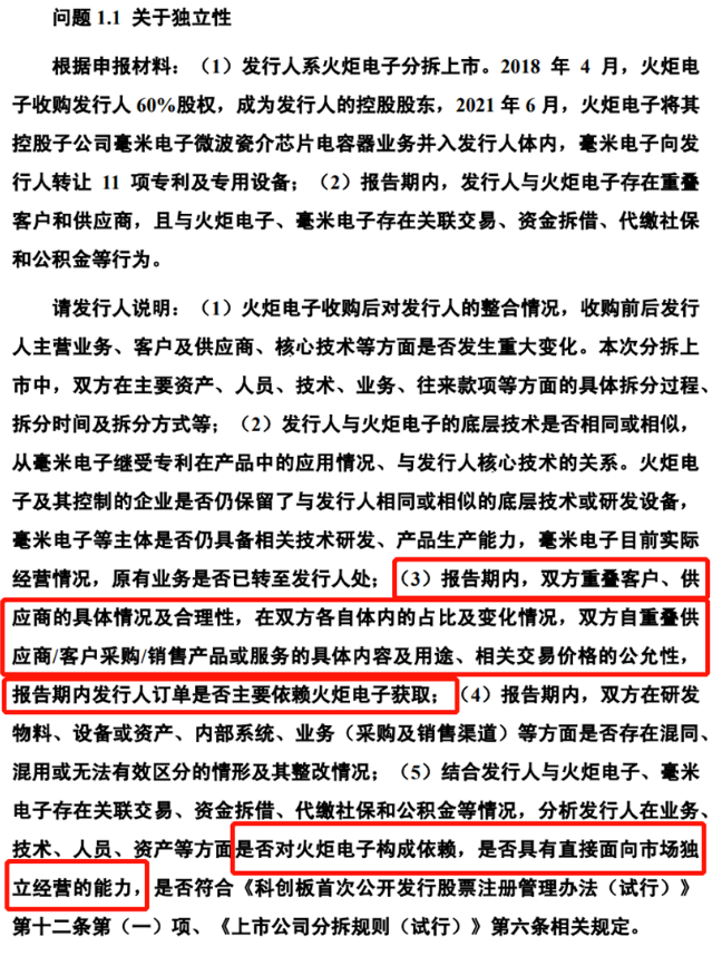 对于研发费用及研发人员认定,上交所连续三次向公司发出问询。其中,第二轮问询函要求公司说明研发人员划分、研发费用归集是否真实准确,研发投入金额的合理性及是否足以支撑其技术先进性、研发创新能力。审议意见函要求公司人说明2022年全年预计实现的营业收入、净利润、研发投入及占比、研发人员占比情况,是否持续满足科创属性评价指标要求。天极科技的科创属性遭到轮番提问,看来天极科技的数次回复并没有让监管部门满意。上交所同样在两轮问询和审议意见函中,全部问到了企业独立性及相关的问题:在首轮问询中,上交所询问了涉及火炬电子收购后对天极科技的整合情况、双方底层技术是否相同或相似、双方存在重叠客户及关联交易、天极科技是否对火炬电子构成依赖,独立性的情况等问题。二轮问询继续对企业独立性发问,还询问了董事长吴俊苗同时在火炬电子任职等事项。审议意见函仅有两个问题,一个是上文提到的对于研发方面的问题,另一个便是要求天极科技结合2018年火炬电子收购发行人的背景与目的、与火炬电子的业务协同性等,分析说明本次分拆上市的必要性及合理性,并对本次分拆有利于火炬电子突出主业、增强独立性的理由进行充分说明。监管部门连续两轮问询全部涉及企业独立性的问题,又在问询函中询问了分拆上市的情况,可见重视程度。同时也很可能说明天极科技的解释并未得到监管部门的认可,所以才会抓着分拆上市和独立性问题一直提问。短时间内,两家企业分拆上市失败,虽然一个被否,一个撤回;一个在沪主板,一个在科创板,但两家企业面临着同样的问题,那就是企业的独立性受到了监管部门的质疑。事实上,分拆上市过程中,共用供销渠道和客户重叠的情况一直是潜在风险,不论是关联交易还是同业竞争,其实最终指向的都是企业独立性问题。从目前监管部门透露的风向看,任何影响公司独立性和未来发展的行为都将受到严格的审核,所以企业如果想分拆上市的话,母子公司之间仍需要保持一定的独立性。这也给其他就算不是分拆上市的拟IPO企业提了个醒:企业的独立性是至关重要的,甚至将会决定企业IPO的成败,所以企业和中介机构要提前准备,提早调整,为IPO之路夯实基础。