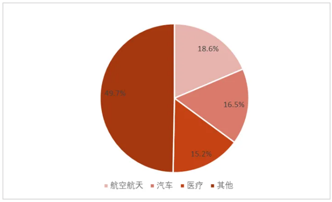 根据尚普咨询发布的《3D打印行业研究报告》数据显示,2025年我国3D打印应用服务产业结构中,航空航天领域应用占比最大,达到18.6%,汽车工业应用占比为16.5%,医疗领域应用占比为15.2%,其后为消费品、电子、学术科研、政府国防、建筑建材等行业。